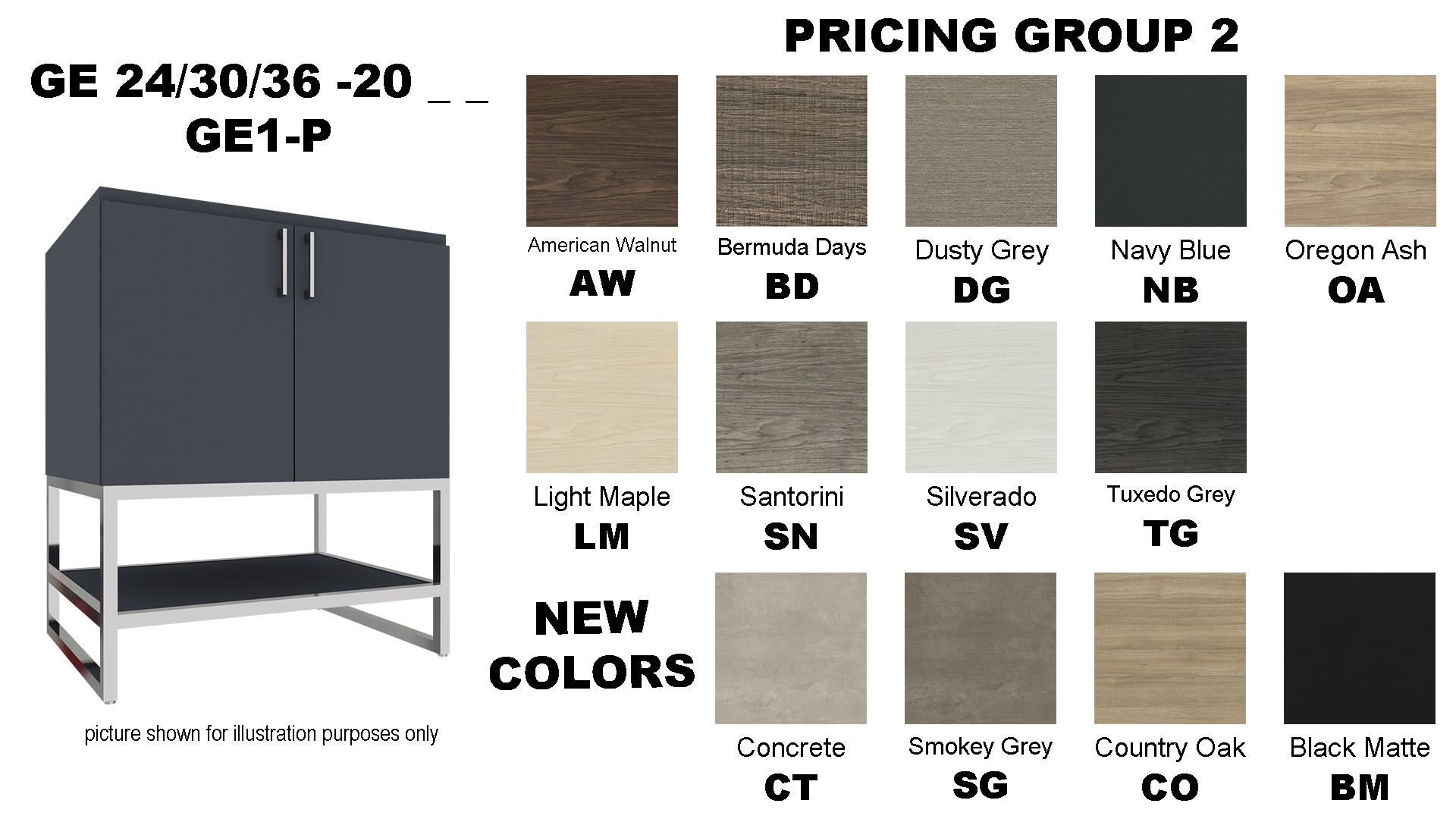 All Genesis vanities feature a standard 21.5″ depth that accommodates any of our standard size sink tops.