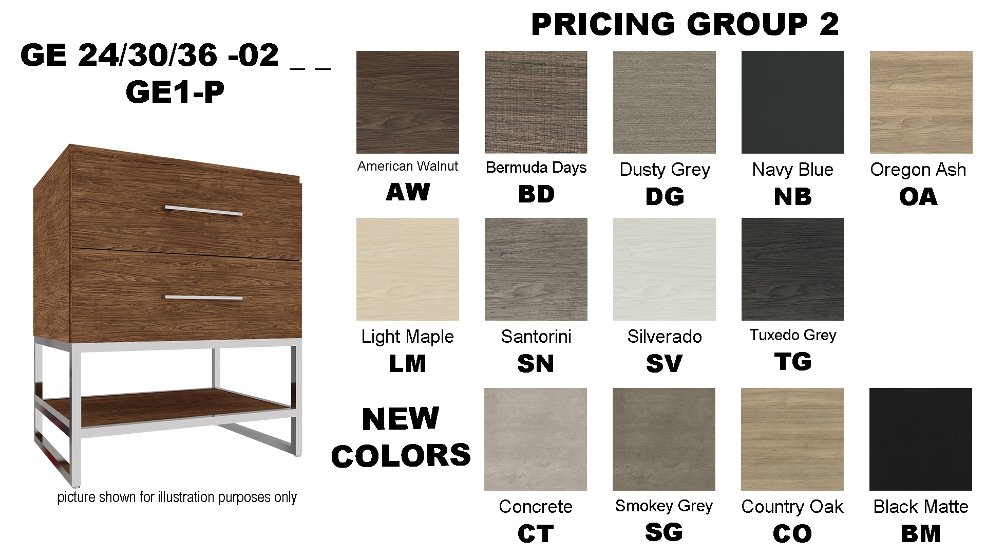 Click below to view cabinet color options available for our made to order vanities.