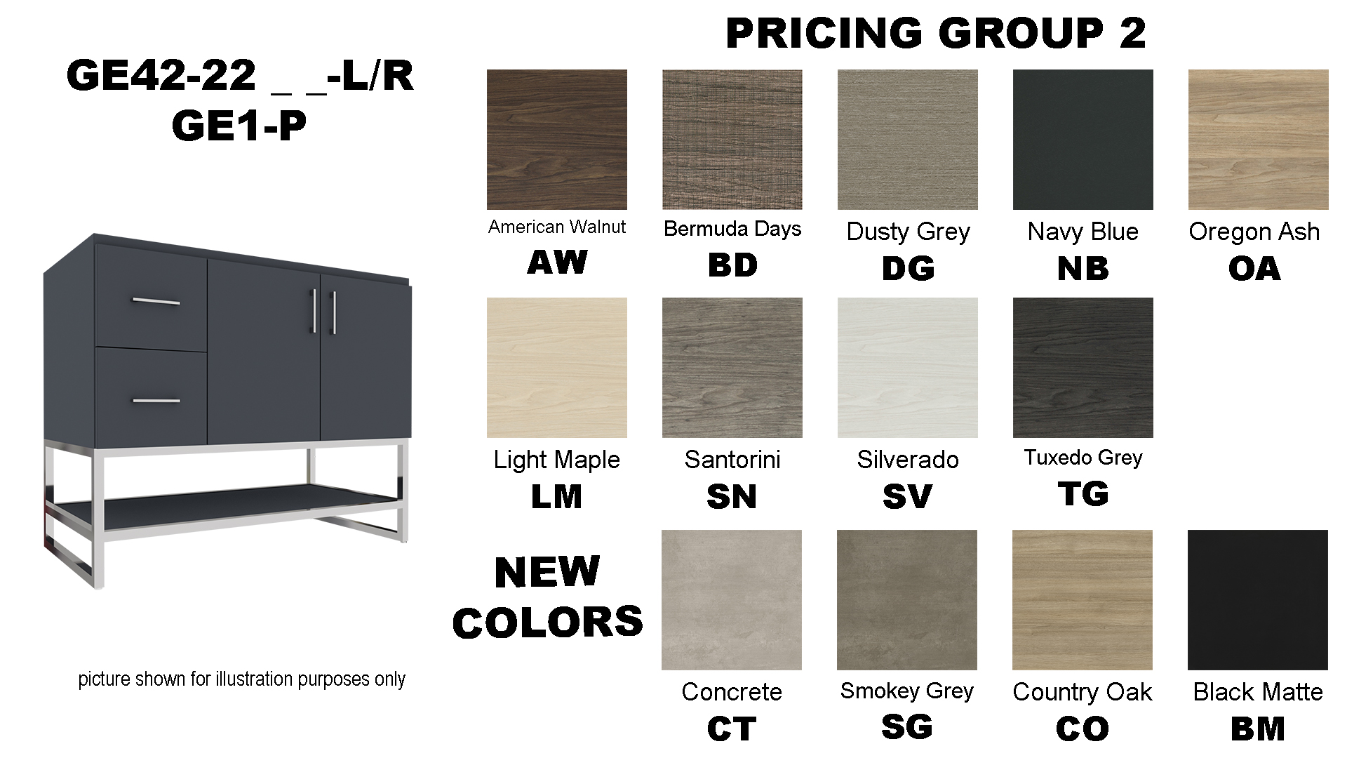 All Genesis vanities feature a standard 21.5″ depth that accommodates any of our standard size sink tops.