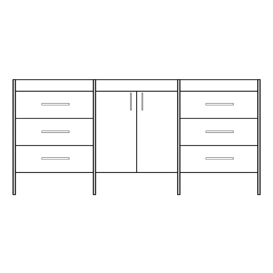 2 Doors w/ Open Shelf & 3 Side Drawers