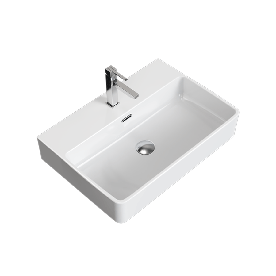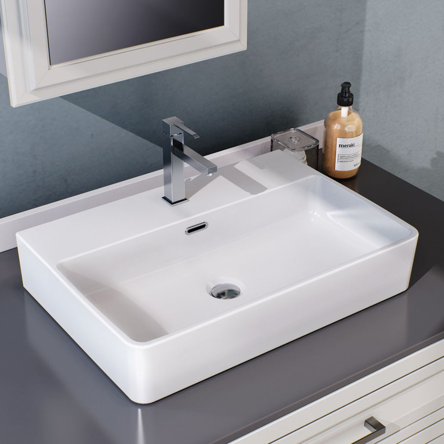 New Milano 24 ceramic sink top in white with 1 hole faucet drill.