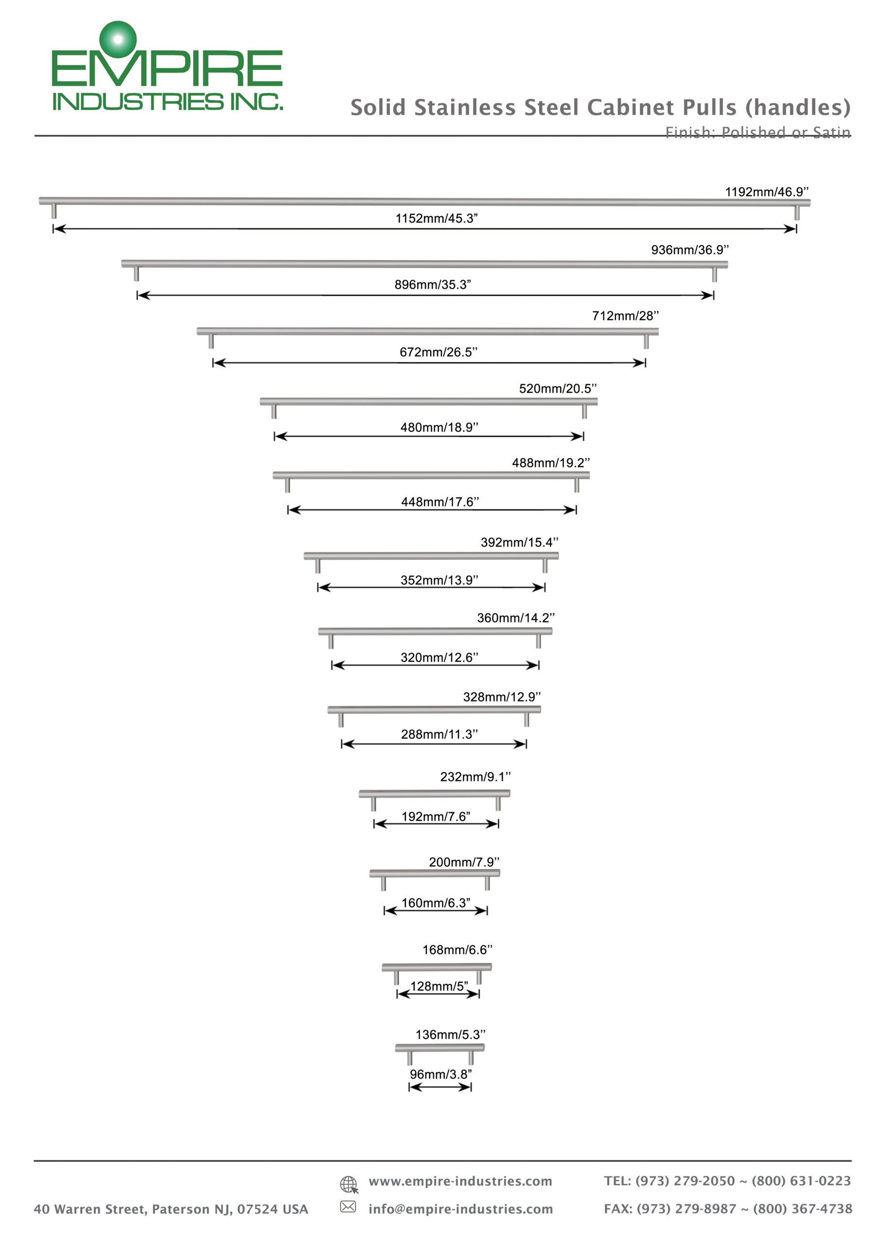 Offered in Polished or Satin finishes, these pulls come complete with mounting screws.