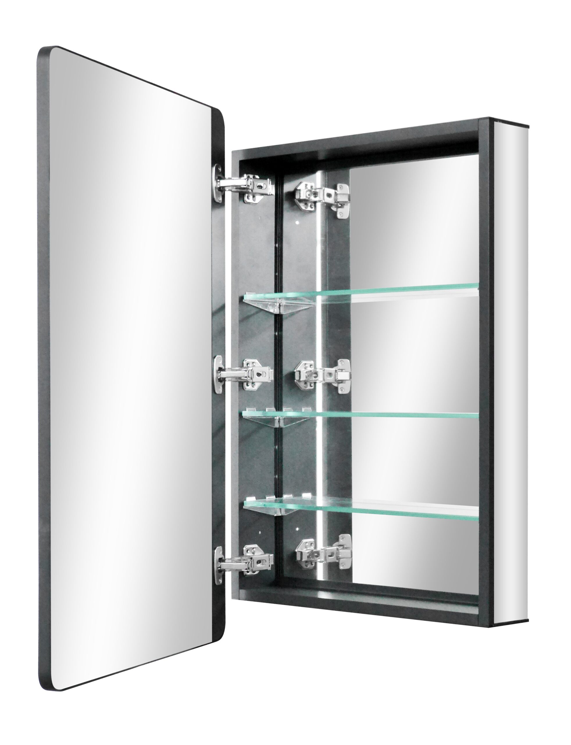 Built with quality materials and reliable hardware, like 3 quality hinges and 3/8″ tempered glass shelves,