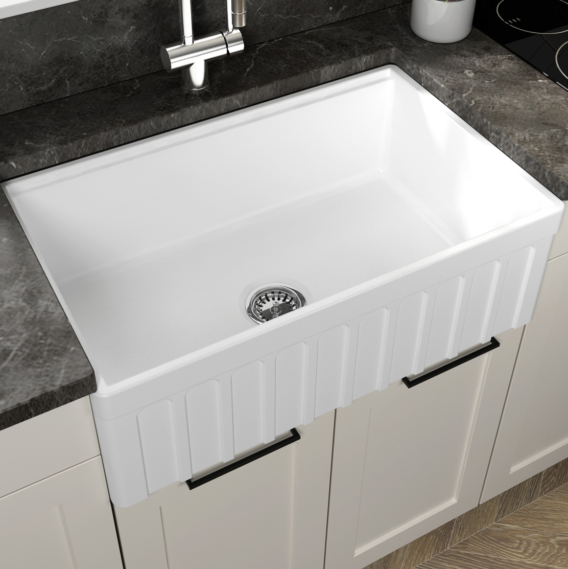 • Due to +- 2% dimensions, it is recommended that cabinet maker waits until sink is delivered before preparing the cabinet.